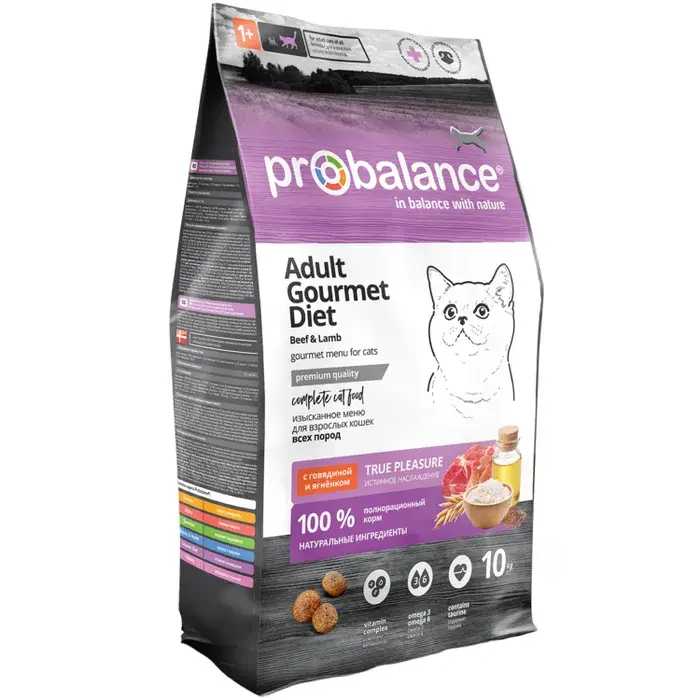 Корм Gourmet Diet Beef & Lamb разработали датские ветеринары для требовательных кошек.